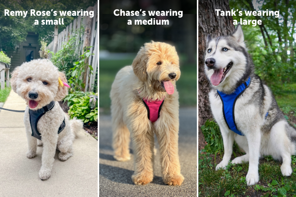 Check out the dogs and their real harness sizes below. Be sure and measure to make sure you pick the perfect fit! Learn more about our measurement guide by choosing a harness.